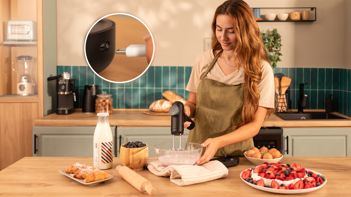 ✅ Ładowanie USB: Naładujesz mikser w dowolnym miejscu – także z powerbanku.
