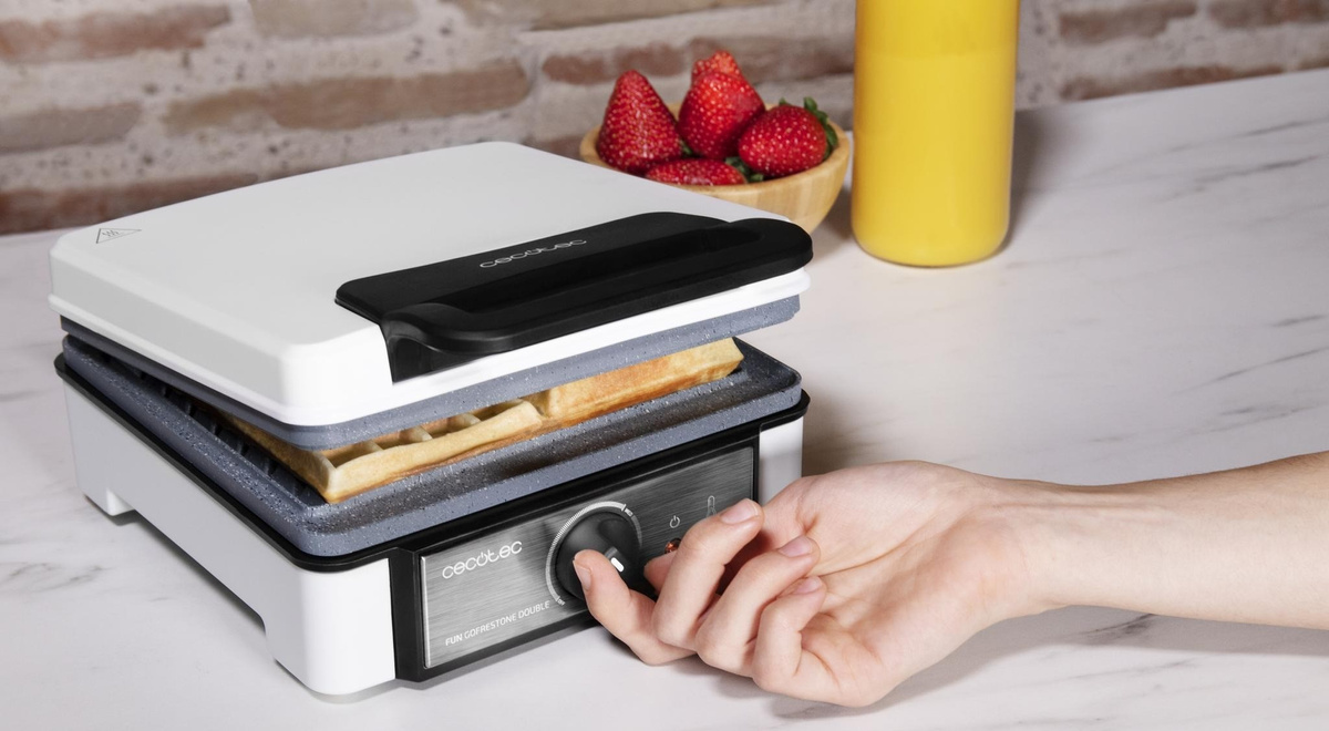 ⭐ Cecotec Fun Gofrestone Double została zaprojektowana z myślą o bezpieczeństwie. Rączka gofrownicy pozostaje chłodna w dotyku, a system ochrony przed przegrzaniem dba o niezawodne działanie. Antypoślizgowa podstawa zapewnia stabilność, a kontrolki LED poinformują, kiedy możesz rozpocząć pieczenie.