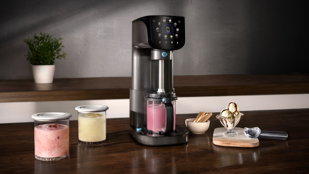⭐ Zostań mistrzem mrożonych deserów z Gelatec 2100 – inteligentną maszyną, dzięki której w 3 prostych krokach stworzysz kremowe, domowe lody, sorbety lub napoje lodowe. 10 programów, ekran dotykowy i technologia CreamOn zapewniają perfekcyjną konsystencję i smak, jak z najlepszej lodziarni.